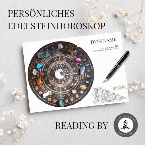 Freue Dich auf unser einzigartiges Edelstein Geburtshoroskop Reading in schriftlicher Ausführung inklusive Platzierung aller 12 Edelsteine in Deinem persönlichen Geburtsradix.